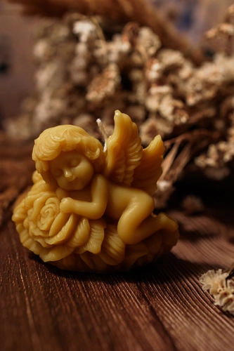 Świeca z wosku pszczelego-Aniołek z Serduszkiem