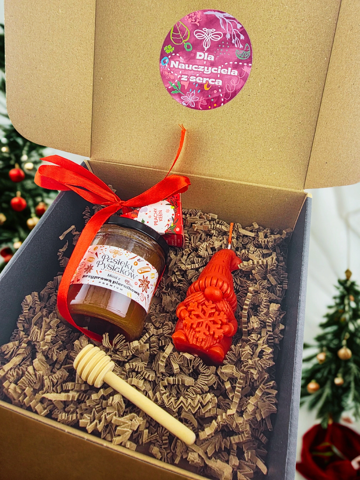 Nasz Zestaw prezentowy to elegancka kompozycja stworzona, by wnieść ciepło, naturalny aromat i wyjątkowy smak do każdej świątecznej chwili. To upominek, który łączy w sobie to, co najlepsze: bogactwo polskiej natury i dbałość o estetykę. Idealny, aby wyrazić wdzięczność, szacunek i troskę o zdrowie obdarowanej osoby.