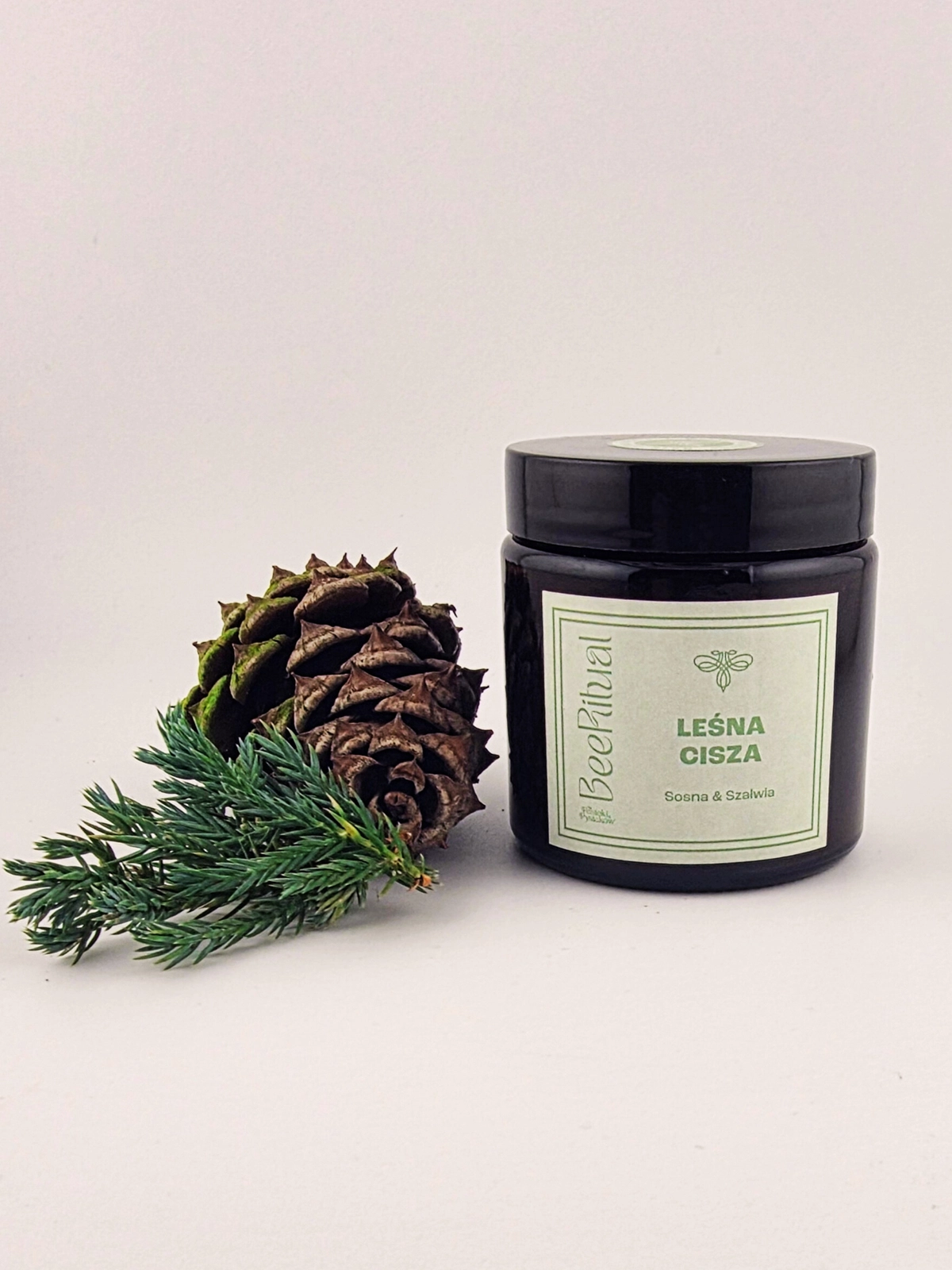 „Leśna Cisza” to świeca z naturalnego wosku pszczelego, wzbogacona o suszone gałązki sosny i szałwii, które wprowadzą Cię w klimat odprężenia. Subtelny zapach lasu, wzbogacony o aromatyczne olejki, stworzy w Twoim domu atmosferę spokoju i harmonii.