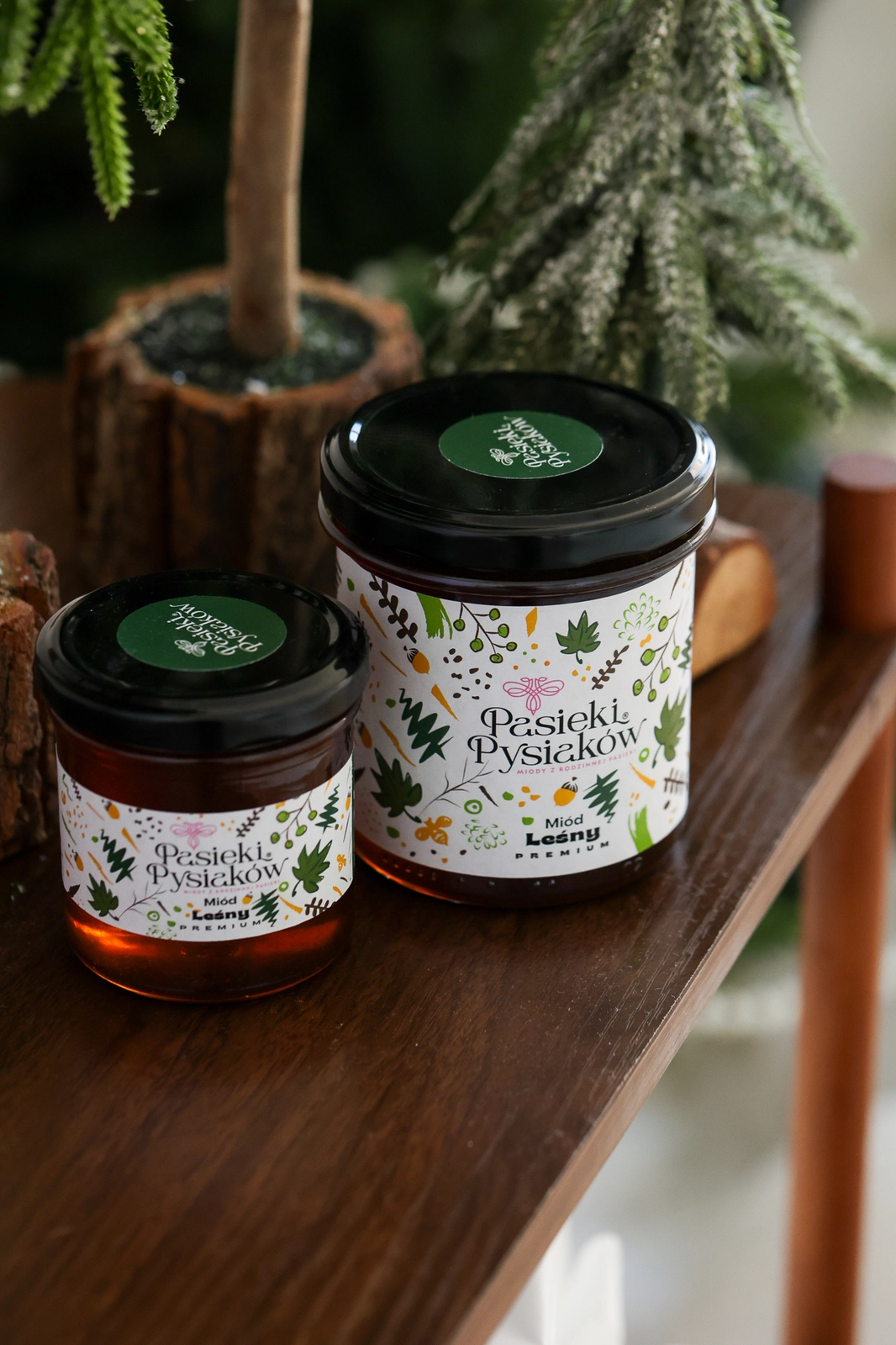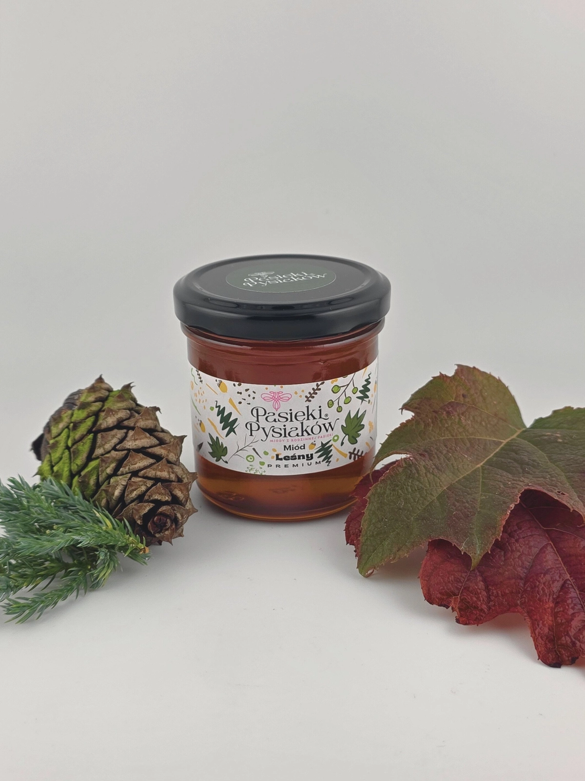 - Naturalny prosto z polskiego lasu zamknięty w słoiku o pojemności 200g. Z duża domieszką spadzi