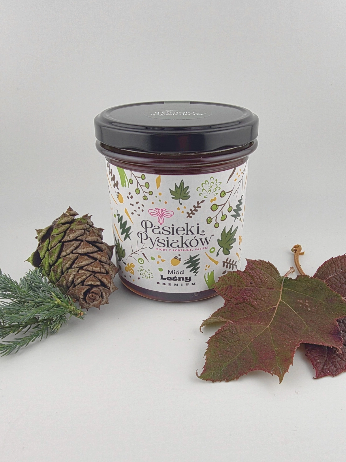 - Naturalny prosto z polskiego lasu zamknięty w słoiku o pojemności 450g. Z duża domieszką spadzi