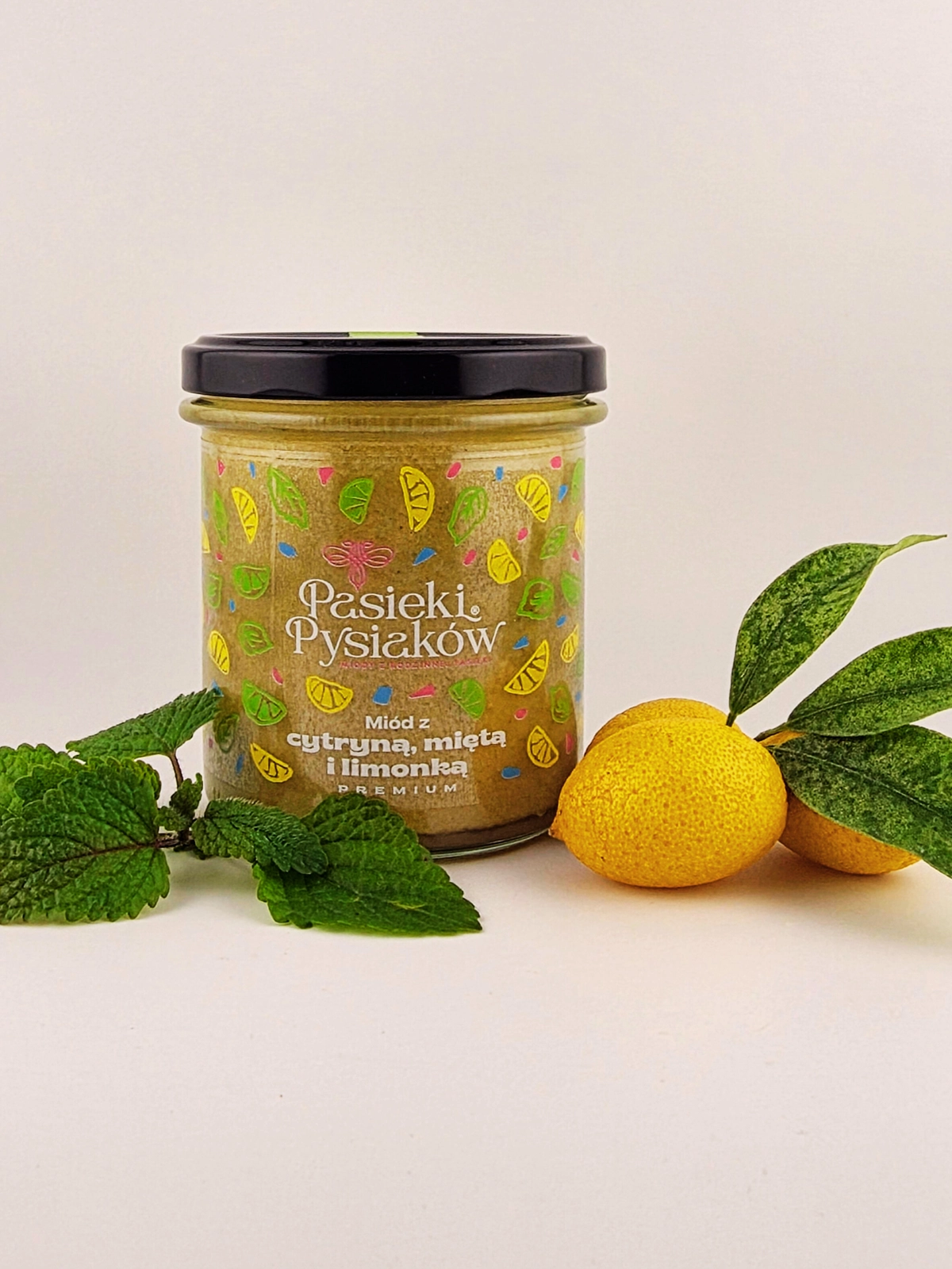 - Naturalny miód wielokwiatowy połączony z cytryną, miętą i limonką liofilizowaną w słoiku o pojemności 430g. 100% produkt polski