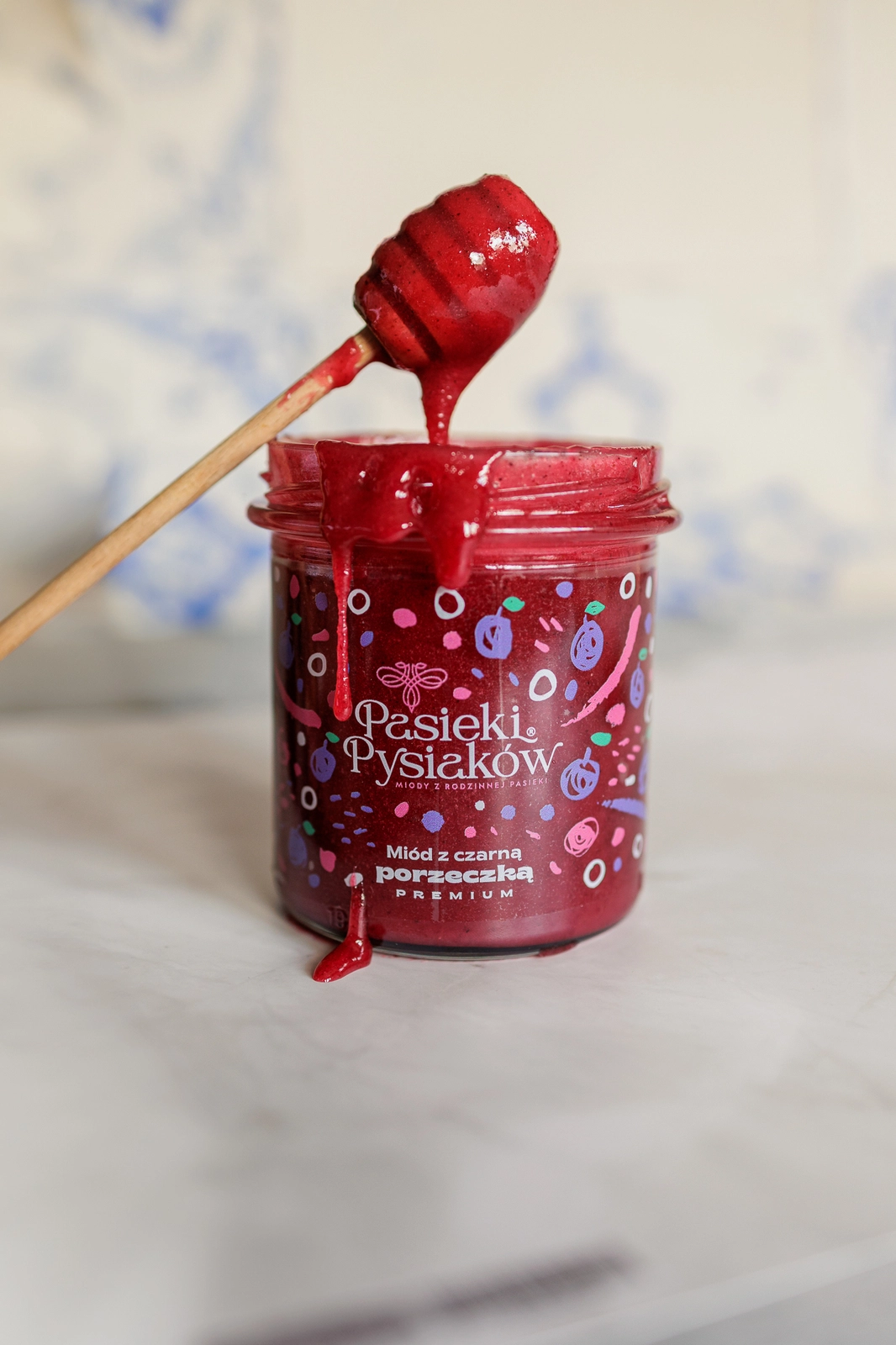- Naturalny miód wielokwiatowy połączony z czarną porzeczką liofilizowaną w słoiku o pojemności 200g. 100% Polska produkcja z własnej pasieki.