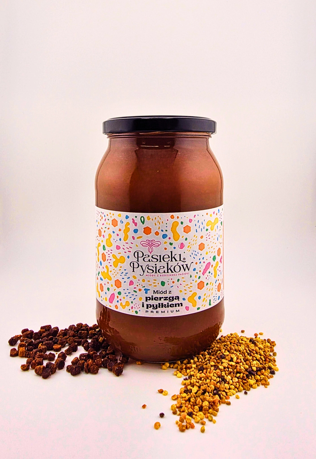 Miód z dodatkiem pyłku i pierzgi pszczelej. - 1200g Pasieki Pysiaków