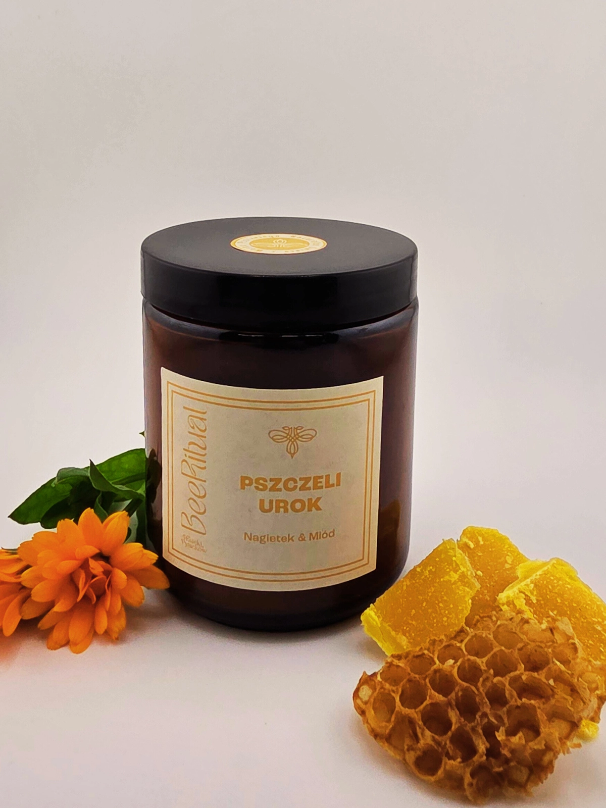 ,,Pszczeli urok" to subtelna, pełna ciepła świeca z naturalnego wosku pszczelego, wzbogacona o suszone płatki nagietka. Jej delikatny zapach i piękny wygląd wprowadzą Cię w stan relaksu, tworząc harmonijną atmosferę pełną uroku natury.