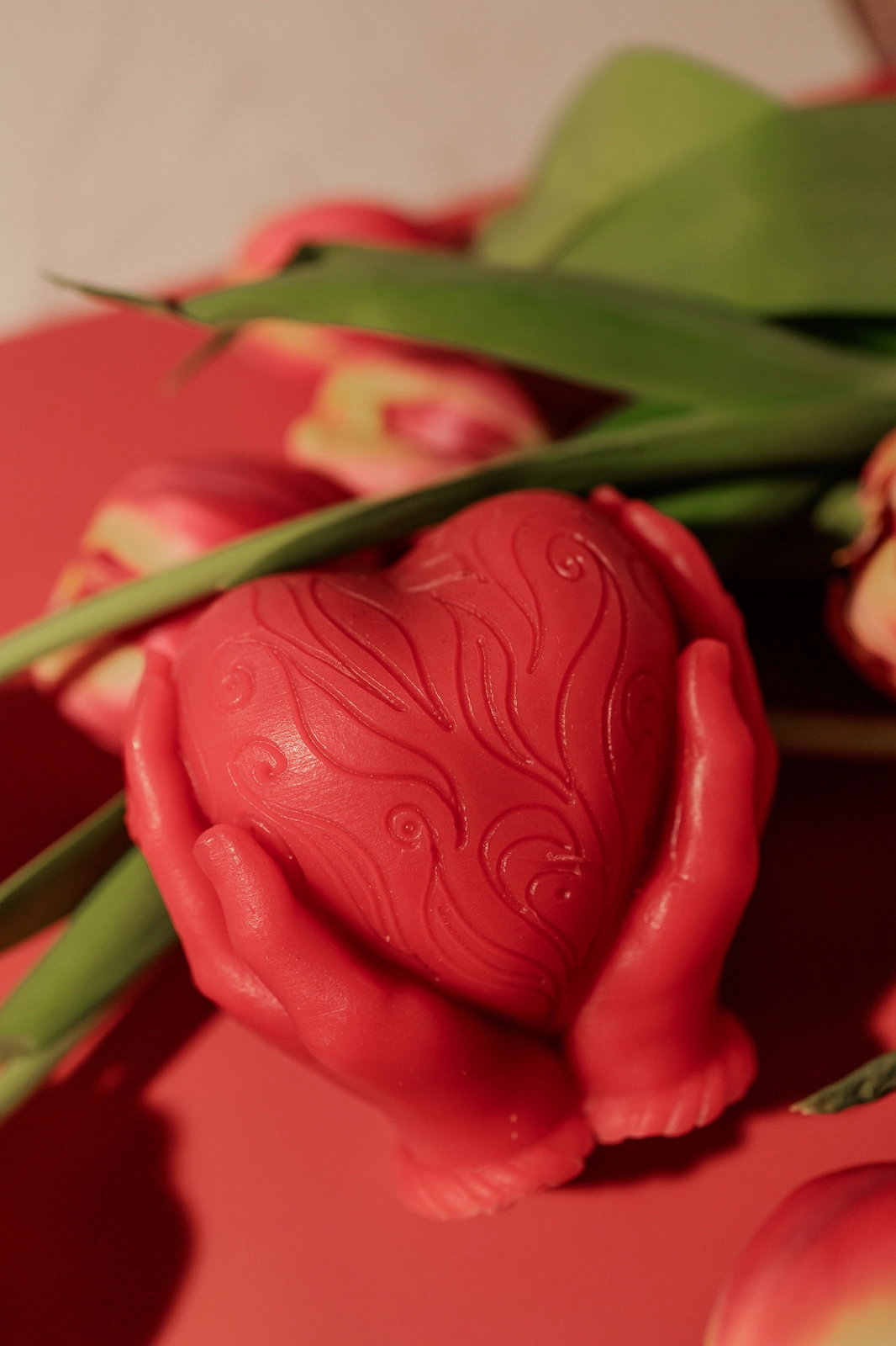Świeca z naturalnego wosku pszczelego - serce w dłoniach