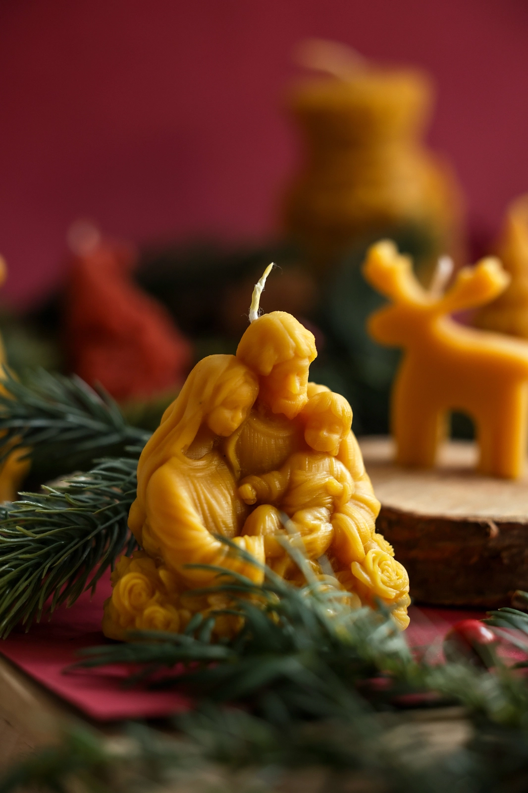 Świąteczne kształty (np. gwiazdki, choinki, aniołki) oraz złocisty kolor sprawiają, że świece te są doskonałym wyborem zarówno jako centralny element dekoracji, jak i szlachetny, naturalny prezent dla bliskiej osoby.