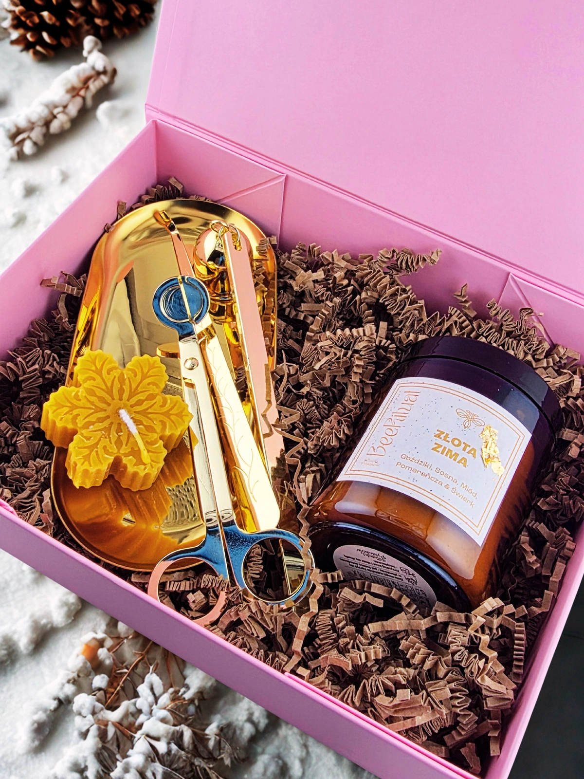 - Świeca z wosku pszczelego w słoiku i z formy, wraz z zestawem do pielęgnacji świec.